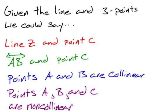 Also, if a set of points do not lie on the same line, they are
