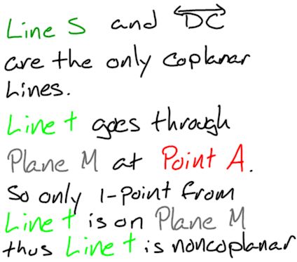 Problem: Identify the coplanar and noncoplanar lines in the diagram. ![]() |