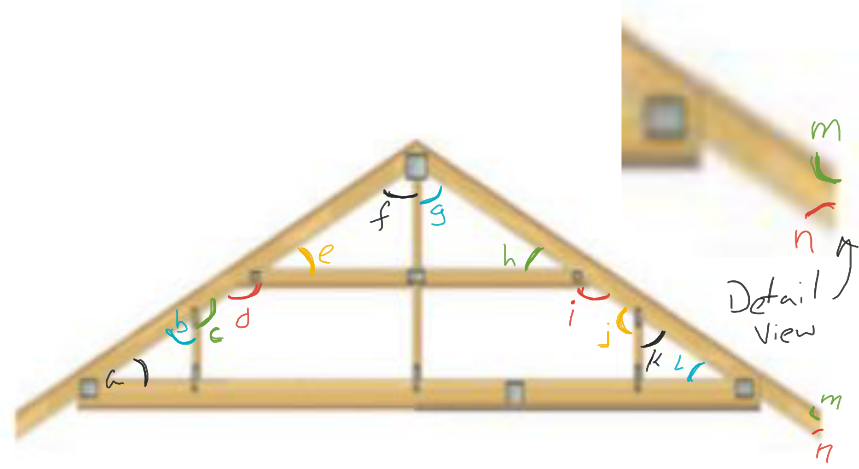 | Use the truss on the right to identify the following: ( see the "Quick Question" for Example B ) 5. Identify all of the angle measures, a - n. |