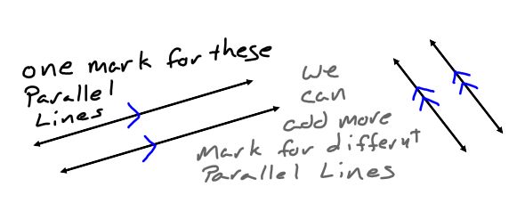 A. Identify parallel lines in BLUE. There is a notation that is used to identify parallel lines just like we identify congruent angles and segments, it looks like this → |