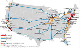 map on the right to answer the following questions: 1. How many different paths could you take to get from Miami to Seattle? 2. If the train only stopped at at each circle/dot, what is the least number of stops possible from Miami to Seattle? |