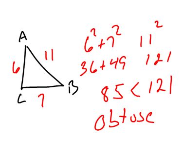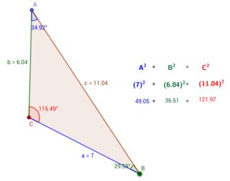 a = 4, b = 6, & c = 11, is this triangle Acute, Obtuse, or Right? |