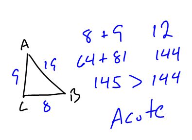 Answer: If we try to make a triangle with these dimension we get... ...an Obtuse triangle ![]() ![]() If we try to make a triangle with these dimension we get... ...an Acute triangle ![]() ![]() |