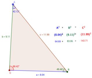 Pythagorean Inequality Theorem:In ΔABC where sides a and b are the two shorter sides and side c is the longest side.