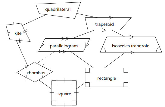 Quadrilaterals are classified according to their sides. The sides of a quadrilateral are either congruent , kites, or they are parallel, trapezoids. Angles are only used to identify a few very specific quadrilaterals; Isosceles Trapezoids, Rectangles, & Squares. Hierarchy of Quadrilaterals and the Definitions of each Quadrilateral: