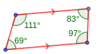 ![]() 111° + 69° = 180°
