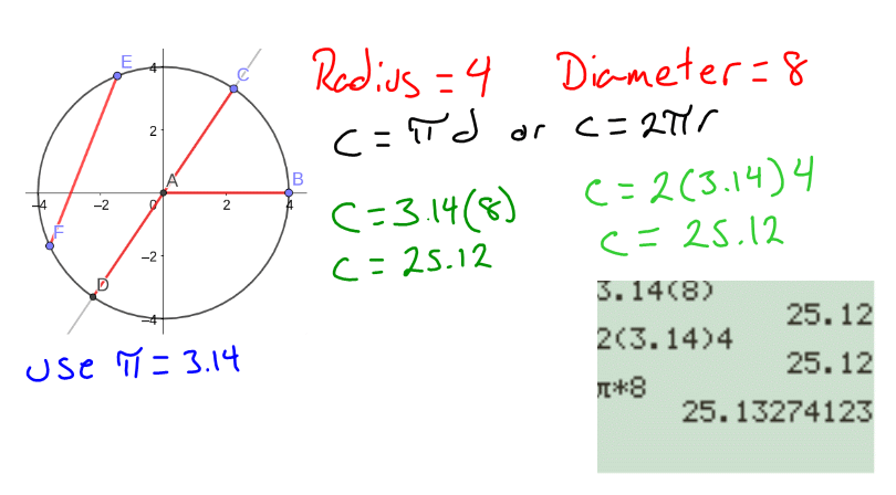 Question: What is the circumference of the circle in Example A? |