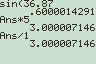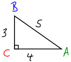 Given Right Triangle ABC with side lengths of 3,4,5. Use Sin to find the measure of angle A: Solution: Step 1, Set up the ratio Step 2, Re-write as inverse sine ![]() Step 3, Enter in to the Graphing Calculator Press: ![]() Now you can enter the fraction Press: and you should now see ![]() Step 4, The answer We were given a long decimal number as an answer, so we will round it to 2-decimal places. So the degree measure of angle A is about 36.87o. |
