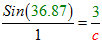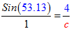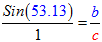 We get the answer of 4.999988091, but since we are working with a triangle where we know what the side lengths should be we can let c = 5. Now that I know c = 5 I can re-write the sine ratio to find the missing side. so: We enter it into the graphing calculator as follows: then and You should now see: