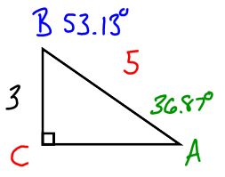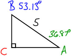 find the other acute angle. Solution: If we know A = 36.87o, then B = 90o - 36.87o = 53.13o or If we know B = 53.13o, then A = 90o - 53.13o = 36.87o So nothing really changes to solve for the missing angles. To find the missing legs, we will need to set-up sine ratio for each missing leg using the hypotenuse.
